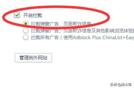 5、我们在这里要先选择的是勾选开启拦截,我们在这里先选择开启拦截,然后可以看到下图默认的拦截。