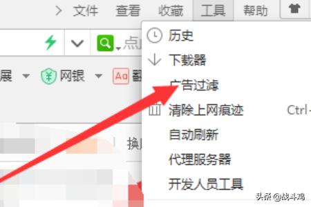 3、然后我们点击工具后,可以看到下图所示的页面,我们在这里选择的是其中的广告过滤,点击。