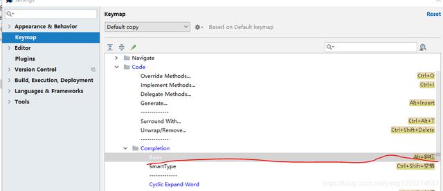 4.代码提示信息快捷键一般设置为ALT+斜杠。因为idea默认的快捷键是CTRL+空格,与习惯上关闭输入法的快捷键冲突,要做修改。由于斜杠按键有个问号,类似提示,所以一把设为ALT+斜杠