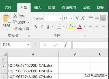 2、新建一个Excel文件,命名为“批量文件重命名.xlsx”。打开该文件,选中A2单元格,Ctrl+V复制所拷贝的文件名。