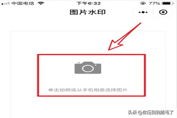 4选择进入后,我们点击页面中间的照相机的图标,进入到个人的相册内,选择自己需要添加水印的照片。
