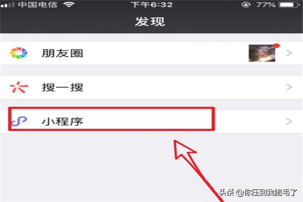 2在发现界面,我们选择页面底部的小程序进入到微信小程序界面。