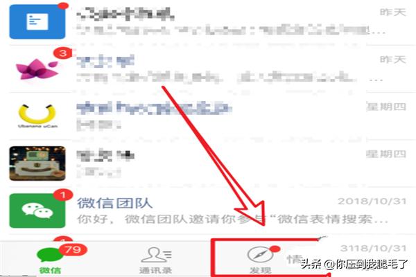 1我们打开手机中的微信应用进入后,点击中间的发现选项进入。
