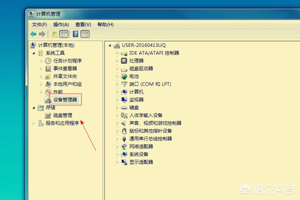 3、点击管理选项后,找到设备管理器,如下图所示: