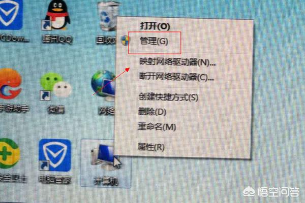 2、其次在“计算机”或者“我的电脑”处点击鼠标右键,选择管理选项,如下图所示: