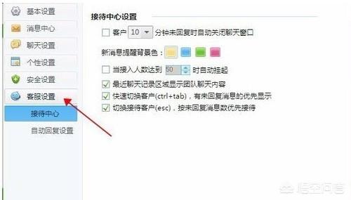 2、进入系统设置界面,在左侧菜单中找到“客服设置”。