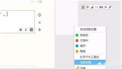 1、打开登录千牛平台,右击小图标弹出菜单中选择“系统设置”。