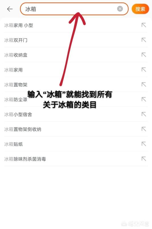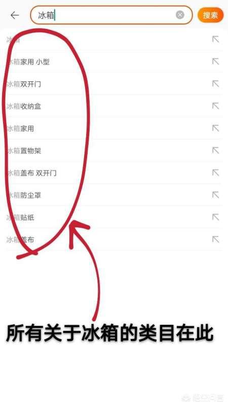 4、输入“冰箱”关键词就会出现所有有关类目。