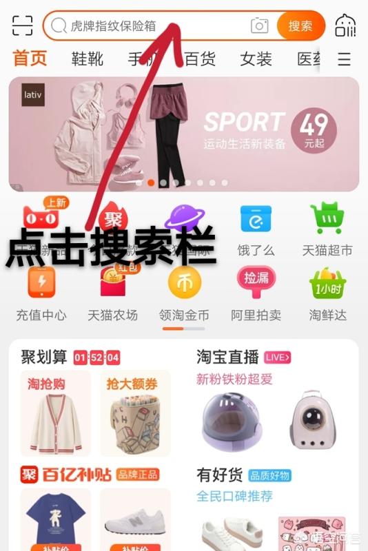 1、对于特定产品类目的寻找,可以采取搜宝贝的特定关键词,打开淘宝。