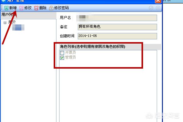 7、点击新增后页面跳转,填写用户名称和密码即可修改开票员。