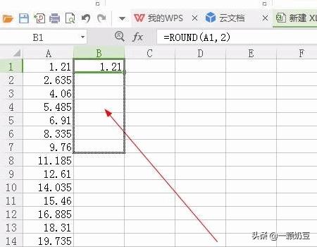 6、确定了一个数据,可以拖动单元格,遵循四舍五入的规则。