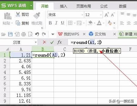 5、然后是确定公式,选择需要的单元格数据,然后是一个逗号,后面是需要保留的位数,这里选择两位,然后回车。
