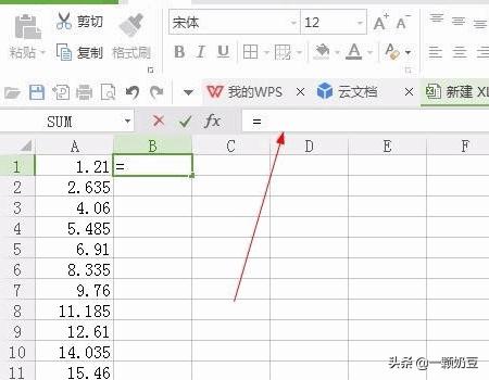3、选择对应的列,点击单元格,输入,在上方方框中输入“=",开始编辑公式。