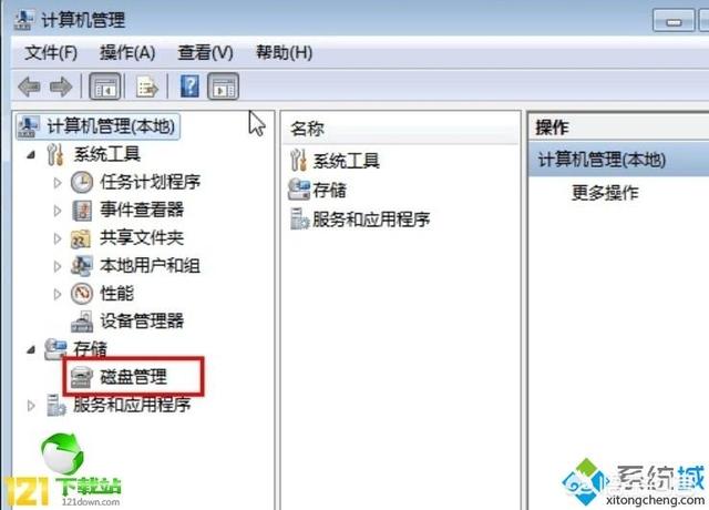 2、在存储管理里找到磁盘管理选项;