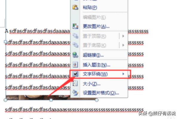 步骤六:还有一种解决方案是:选中图片,点击鼠标右键,选择文字环绕。