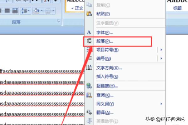 步骤二:把光标位置置于图片的末尾,然后点击鼠标右键,进入“段落”选项。