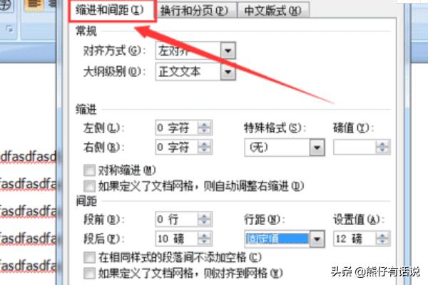 步骤三:然后,切换到“缩进与间距”选项卡。