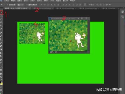 5、点击左上角的移动工具,点击图片拖动,将图片拖出为一个单独的方框,然后在点击方框中的图片将其拖到画布中。
