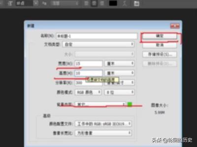 2、新建一张宽15cm,长10cm,背景色为绿色的画布并点击确定,当然画布大小及背景色等设置据个人情况选择。