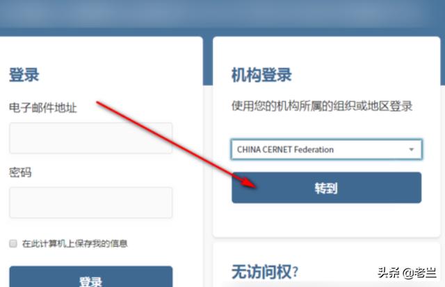 1、登录web of science的网址,此时我们看到机构登录的选项,选择CHINA CERNET Fderation选项。