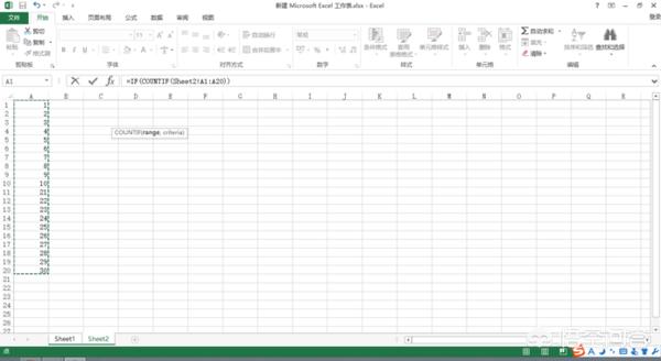 3.在sheet1的B2单元格上输入“=if(countif())”。