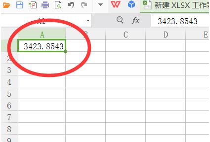 1、在excel表格中输入小数数值,需要将该数值取整数而不四舍五入。