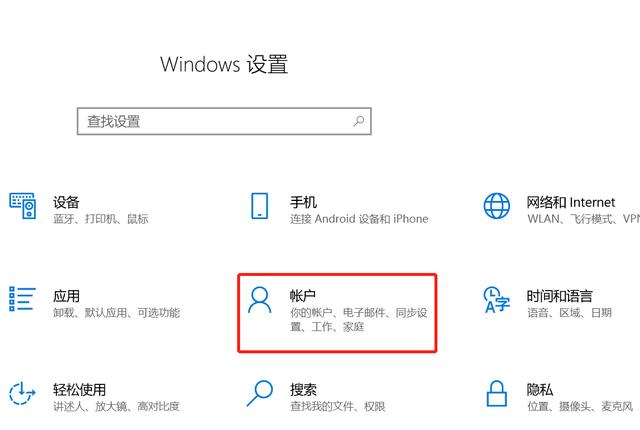 2.在设置界面中,再点击【账号】进入账号信息界面。