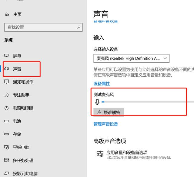 左侧点击声音,右侧,滚动鼠标,移动到“测试麦克风”,大声讲话,测试麦克风的声音。