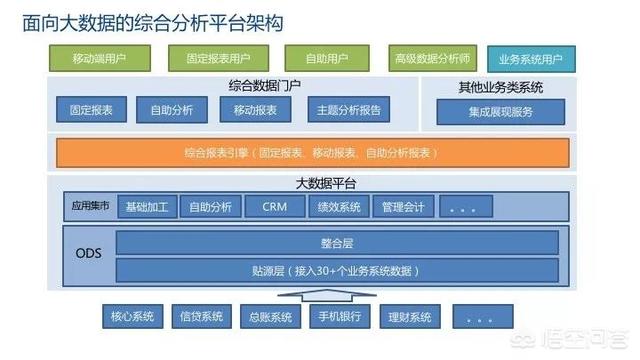 这是中原银行目前面向大数据的综合分析平台架构,在这方面各行差异不大。
