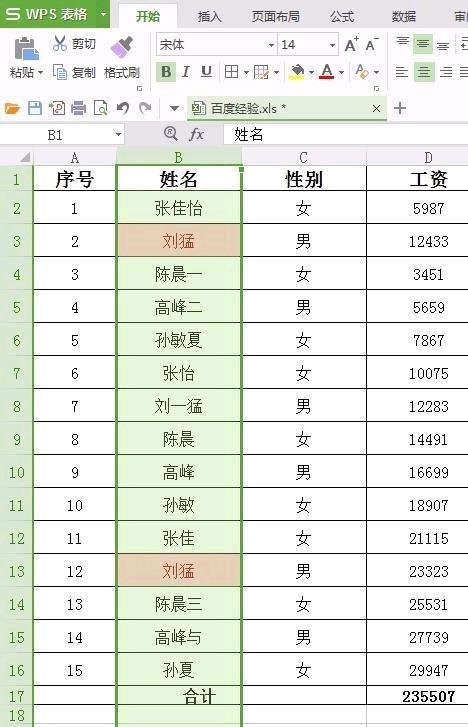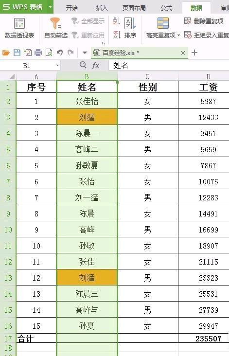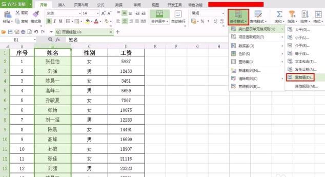 查找重复项(wps表格中怎样在其它列中查找相同名字)