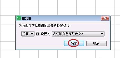 第四步:在弹出的重复值对话框中单击“确定”按钮。
