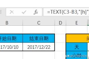 在单元格内输入:=text(“结束日期”-“开始日期”,"[h]");表示将两个日期之间的间隔天数转换为小时数