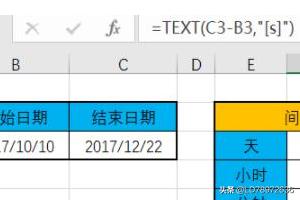在单元格内输入:=text(“结束日期”-“开始日期”,"[s]");表示将两个日期之间的间隔天数转换为秒数