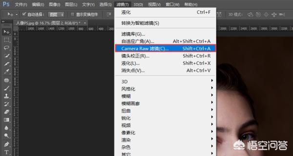 5、然后点击【滤镜】-【Camera Raw滤镜】。
