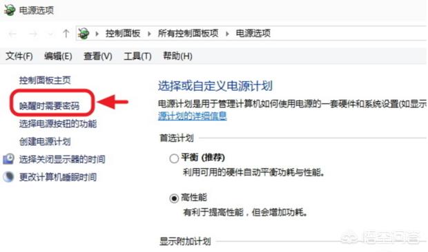 其次是进入电源选项页面时再选择点击“呼醒时需要密码”(如下图):