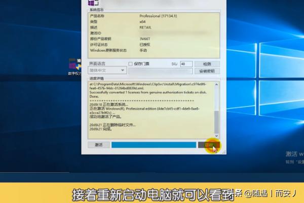 3,打开软件后,直接点击下方的激活即可,此软件会自动安装免费版Windows密钥并激活,操作完成后就可以看到软件已经提示成功激活了产品,重新启动电脑即可。
