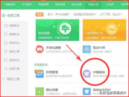 2、如图所示,找到“诈骗查询”点击进去。