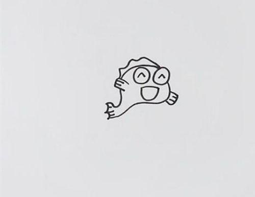 1 步骤一:椭圆形画出一个小鱼的身体轮廓,接着用三角形画出小鱼尖尖的尾巴,波浪线画出鱼鳍的造型,两个椭圆形画出小鱼的眼睛,半圆形画出小鱼开心的张开着的嘴巴样式。
