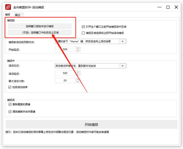 四、然后回到软件中,继续设置;在这里可根据自己的需要选择设置滚动方式及捕捉后的动作等;