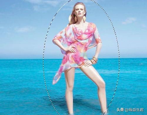 4、使用椭圆形选区工具,在人物上画出一个椭圆形选区,如图所示。