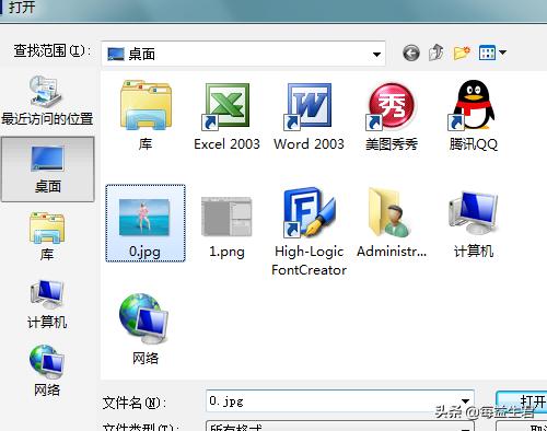 2、在该界面内按下Ctrl+O键弹出打开图片对话框,在该对话框内选择我们需要的图片,如图所示。