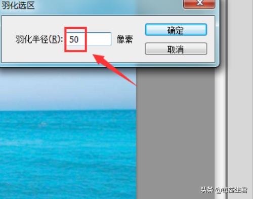 7、点击羽化选项,在弹出的对话框内设置羽化值为50,如图所示。