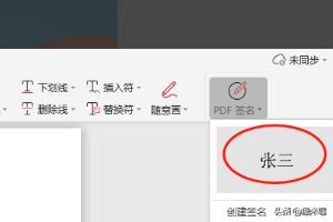 6点击【确定】,再点击【PDF签名】按钮,弹出下拉菜单中包括“张三”的签名。