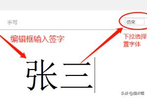 5以文字为例,点击【文字】选项卡,在编辑框中输入签字,比如“张三”,根据需要设置字体。