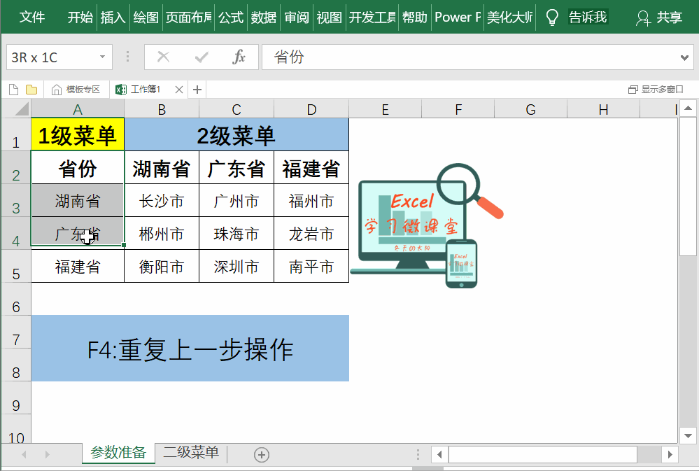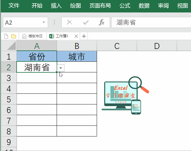 这样,动态二级下拉菜单就做好了!在A列可以选择省份,在B列就可以选择对应省份的城市了!具体操作动图如下: