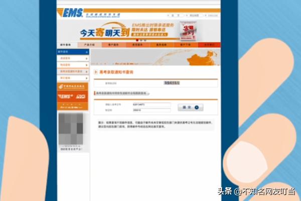 1、首先在手机浏览器中打开“中国邮政速递物流”的官网,点击界面中的“高考录取通知书查询”。