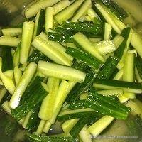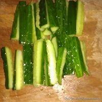 把切好的黄瓜段用盐杀一下水份,腌大概10分钟左右,控出水份。