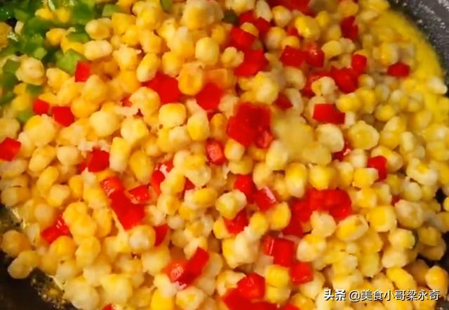 所需原料:玉米粒350克,鸡蛋一个,淀粉50克,青红辣椒各20克,咸蛋黄2只,白糖10克。