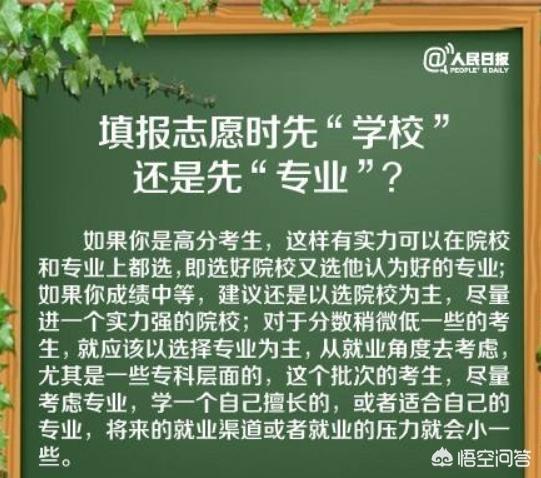 高分段选择学校。根据自己的兴趣选择专业,要选择名校,名校出去以后就业好很多!分数足够的话应该首选城市,再选择专业,假如分数有欠缺,建议先选专业。在一个好的城市读书,城市具有独有的的地理优势,毕业后能更好的找工作。但是分数欠缺,首选专业。