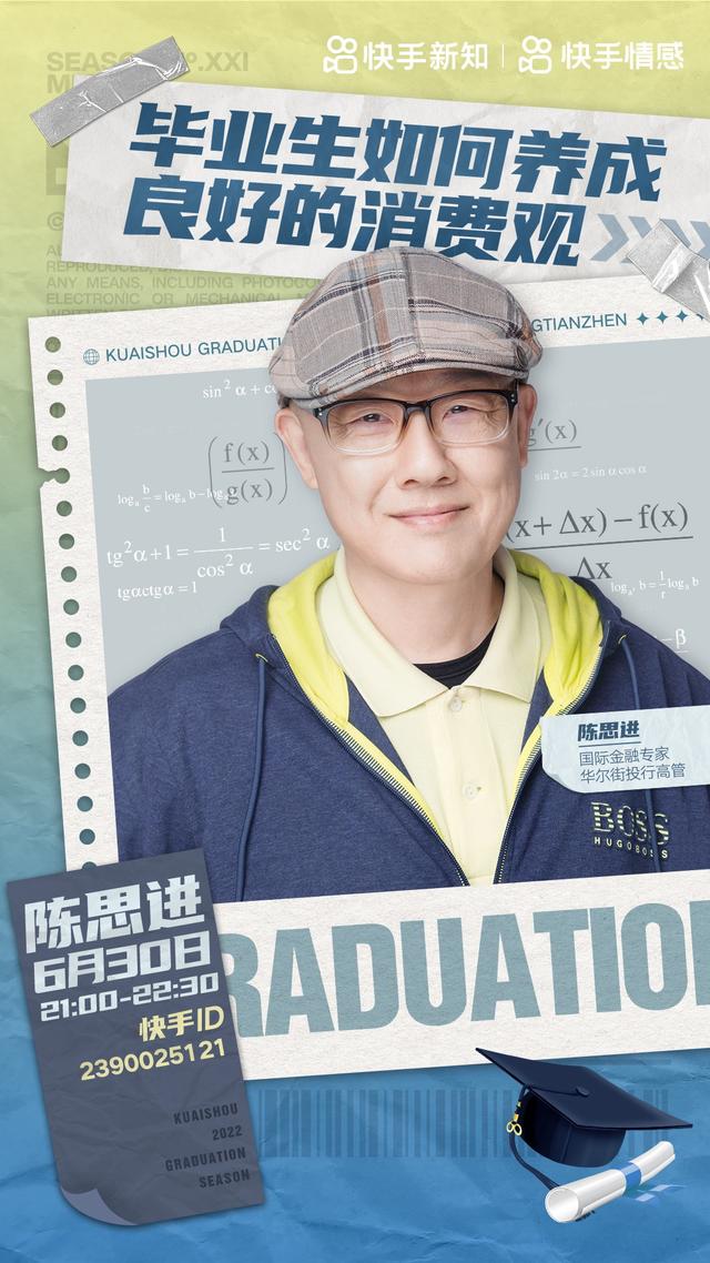 最后再打个小广告,最近,快手邀请我和新华社、朱丹、沈奕斐、饶雪漫、北大艾力等大咖一起,做一个毕业季的系列直播活动。将在明晚(30日周四)晚9点,以“毕业生如何养成良好的消费观”为题,开启小白理财第一课,请届时来到我(陈思进)的快手直播间,不见不散!